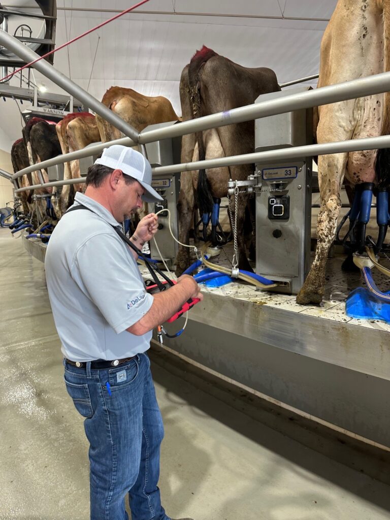 Cow Care in action—ensuring the parlor equipment is functioning properly.